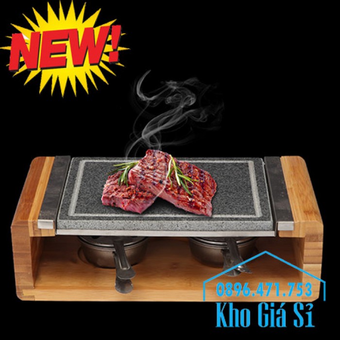 Bộ đá nướng thịt Hàn Quốc BBQ hình chữ nhật có giá đỡ bằng gỗ giữ nóng bằng cồn