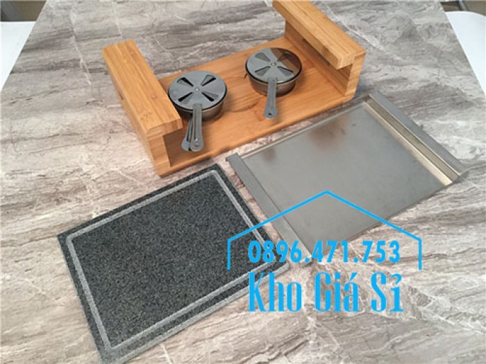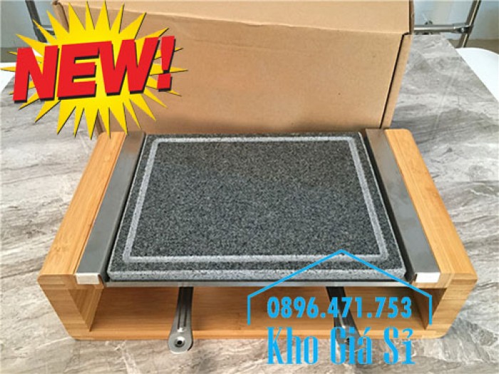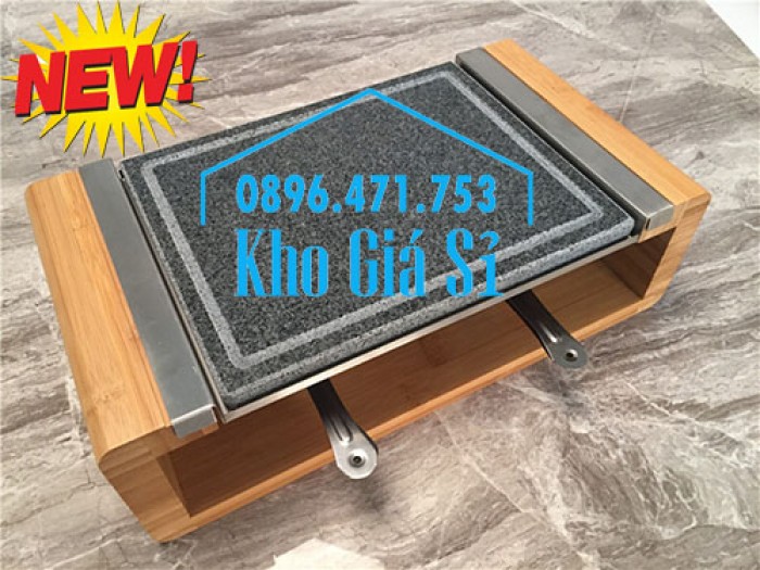 Chân đế được làm bằng gỗ hình chữ nhật, miếng đá được duy trì nhiệt độ bằng 2 hũ cồn