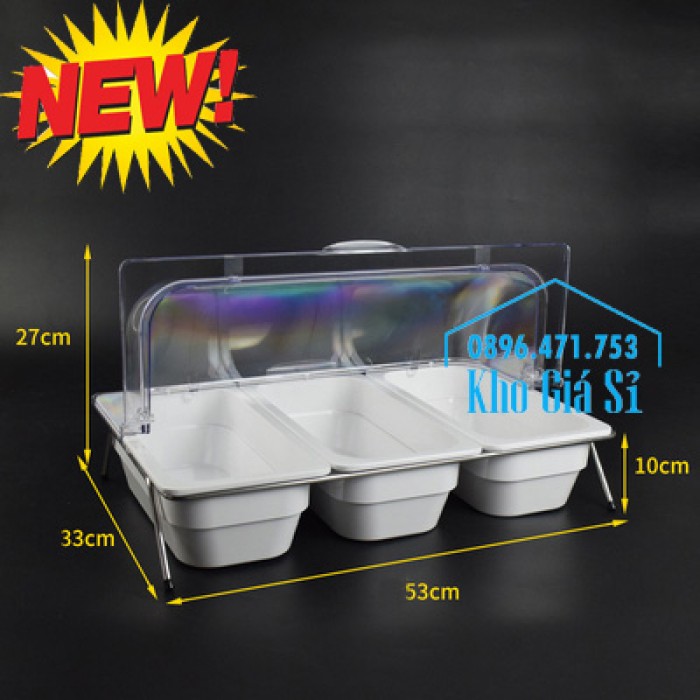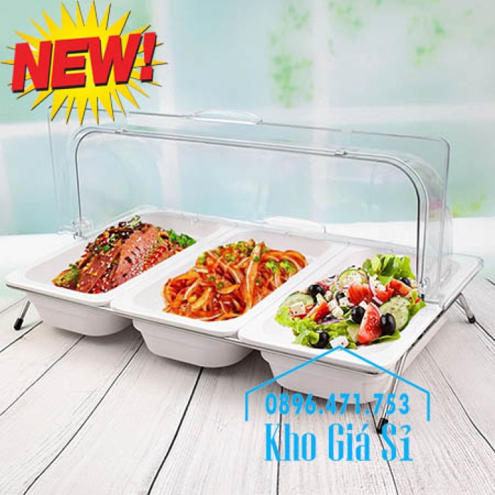 BỘ KHAY MELAMINE 3 NGĂN CÓ NẮP ĐẬY TRANG TRÍ THỨC ĂN TIỆC BUFFET