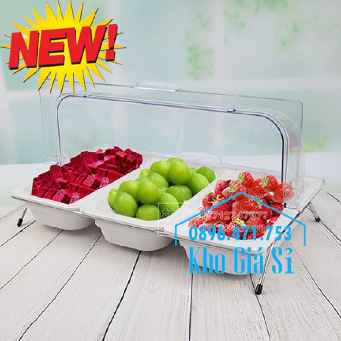 Bộ khay 3 ngăn có nắp đậy chuyên dùng để trưng bày, trang trí các loại trái cây, thức ăn, bánh ngọt tiệc buffet