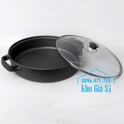 Chảo gang đúc nguyên khối nướng thịt, áp chảo trên bếp từ, bếp điện đường kính 31cm