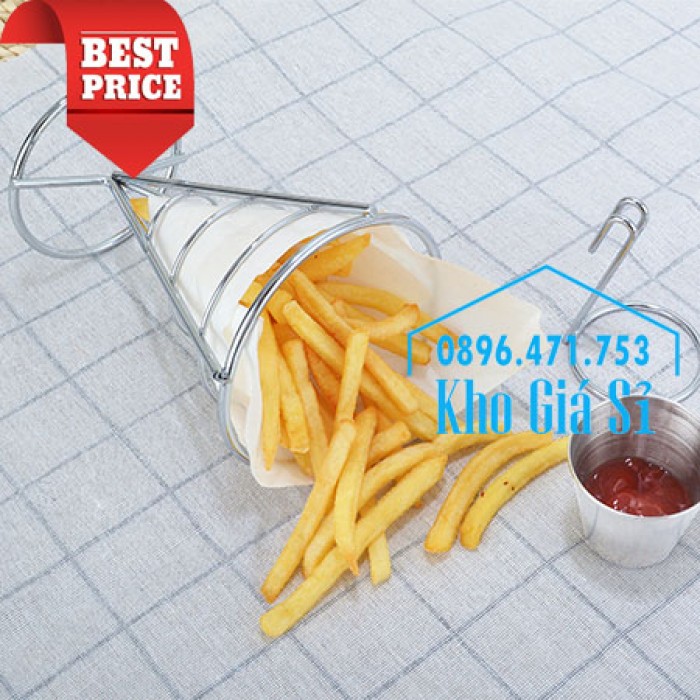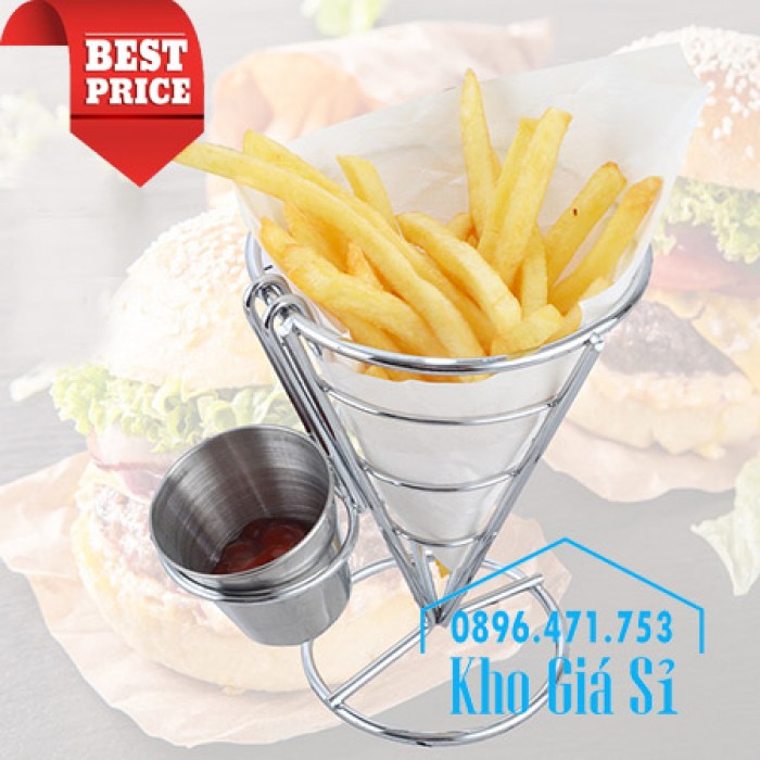 Đồ dùng đựng khoai tây chiên hình dạng chiếc ly bằng inox 304