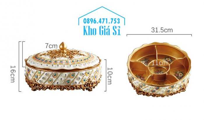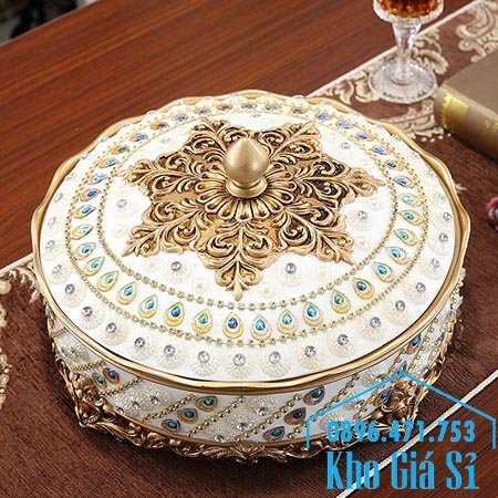 Hộp khay đựng kẹo bánh mứt tết giả sứ cao cấp đính pha lê