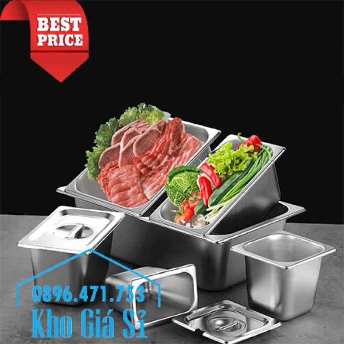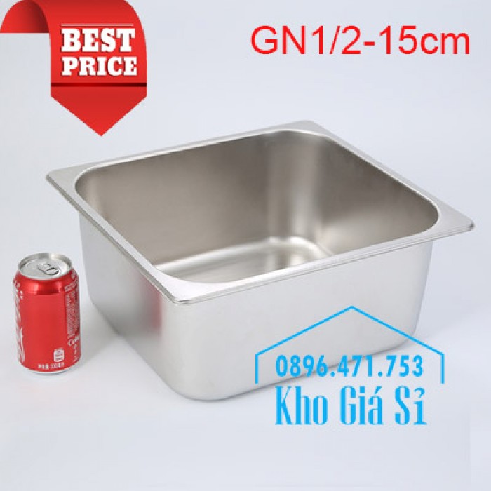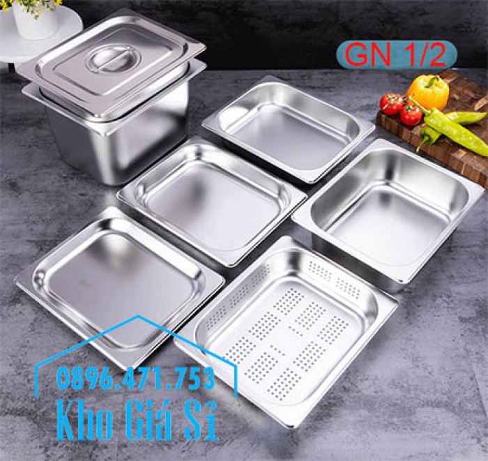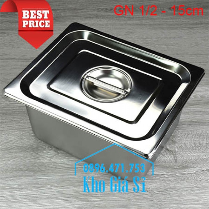 Khay inox 1/2 chiều cao 15cm đựng rau sống, củ quả, trái cây tươi