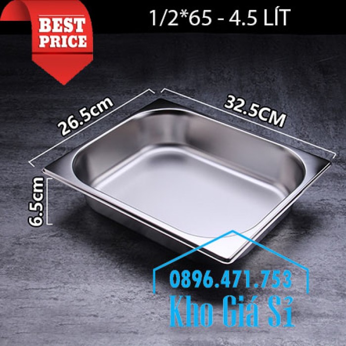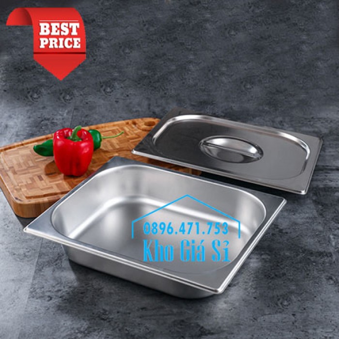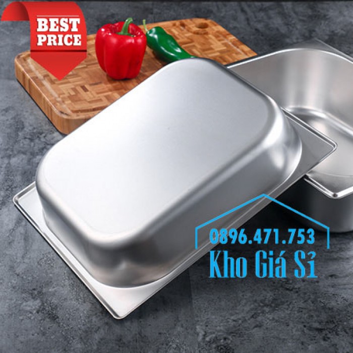 Khay inox 1/2 - 32.5cm x 26.5cm chiều cao 6.5cm giữ lạnh trái cây tự chọn