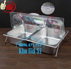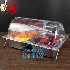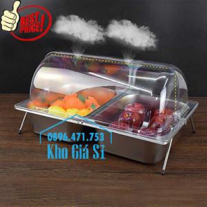 KHAY INOX 2 NGĂN CÓ NẮP ĐẬY MỞ 1/2 CHỐNG BỤI BẨN, CÔN TRÙNG