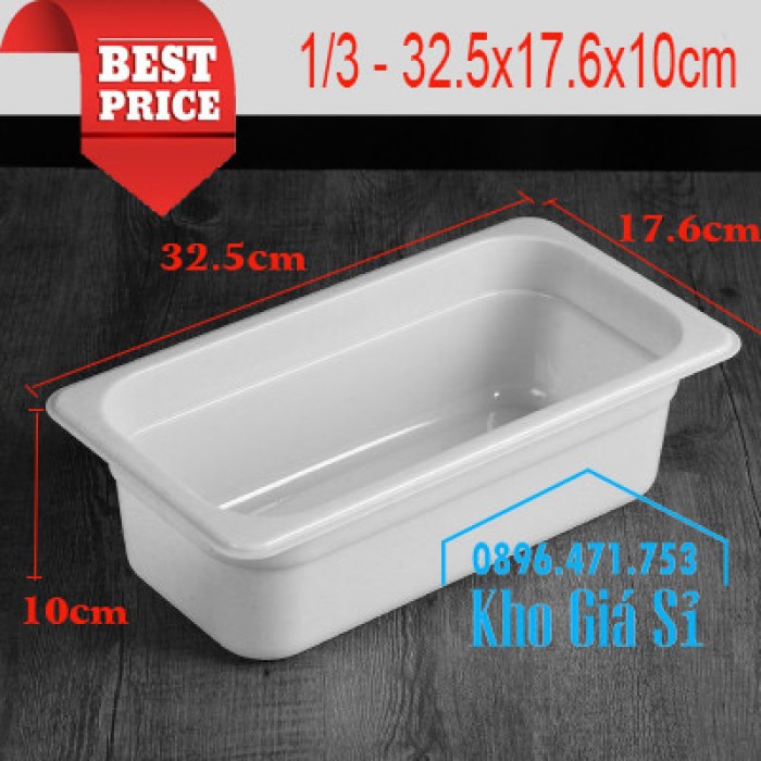 Khay melamine 1/3-100 chuyên dùng để trưng bày, trang trí các loại thực phẩm, thức ăn nấu ăn, bánh ngọt, salad trái cây tiệc buffet
