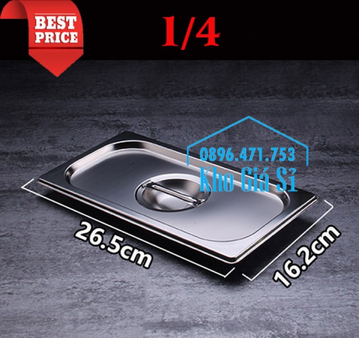 Nắp khay inox GN 1/4 kích thước 26.5cm x 16.2cm