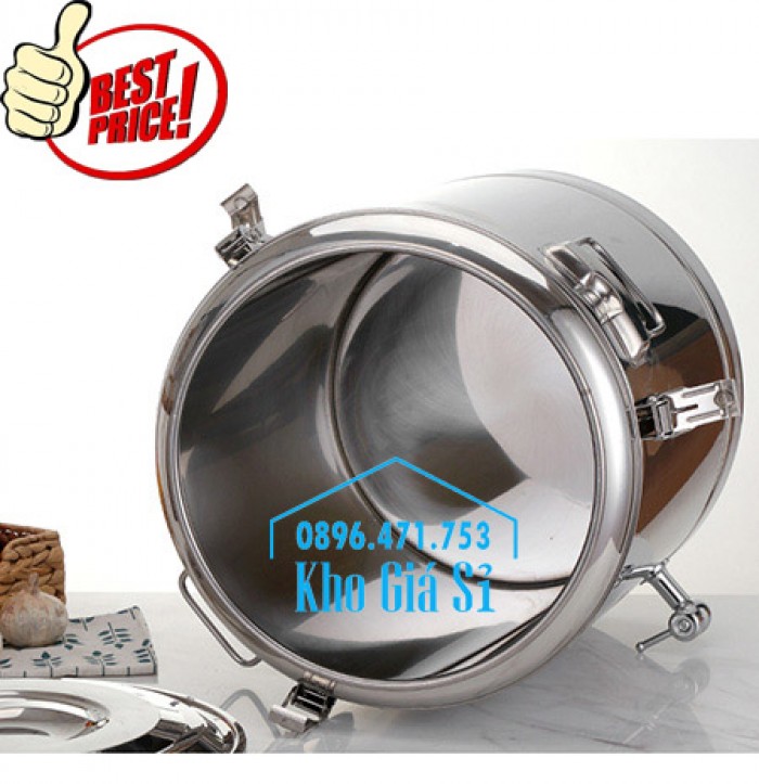 Nồi inox bảo ôn 2 lớp chuyên dùng để đựng suất ăn công nghiệp cho công nhân hoặc các bữa ăn trong chùa.
