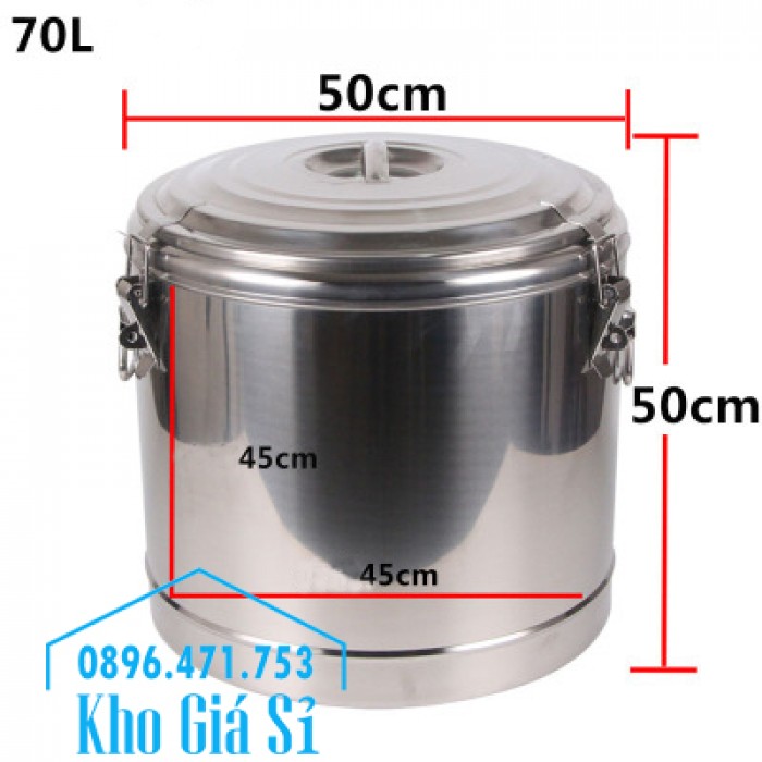 Thùng, Nồi inox bảo ôn 2 lớp cách nhiệt dung tích 70 lít đựng suất ăn công nghiệp cho công nhân