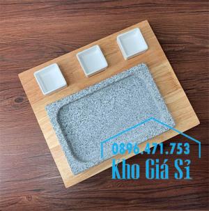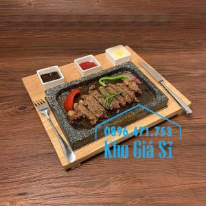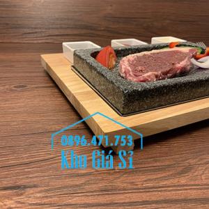 Dĩa đá nóng ăn bò bít tết, bò nướng Nhật Bản có khay gỗ phục vụ