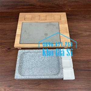 ▪️Bộ sản phẩm gồm: 1 đế gỗ, 1 tấm đá granite, 1 đế kim loại (lót bên dưới tấm đá), 3 chén chấm melamine