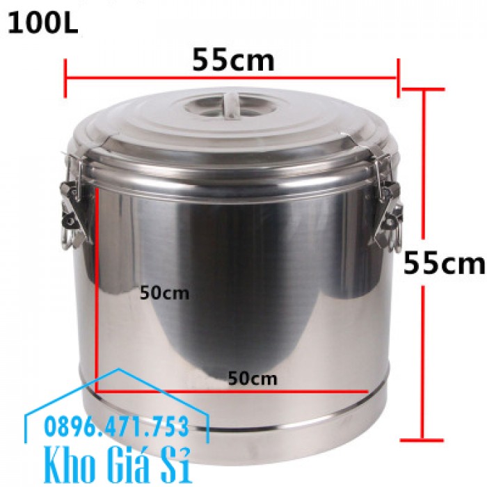 Thùng inox 100 lít - 2 lớp cách nhiệt có nắp đậy kín đựng gạo, bột mì