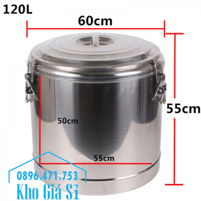 Thùng inox bảo ôn dung tích 120 lít có nắp đậy kín đựng thực phẩm, thức ăn