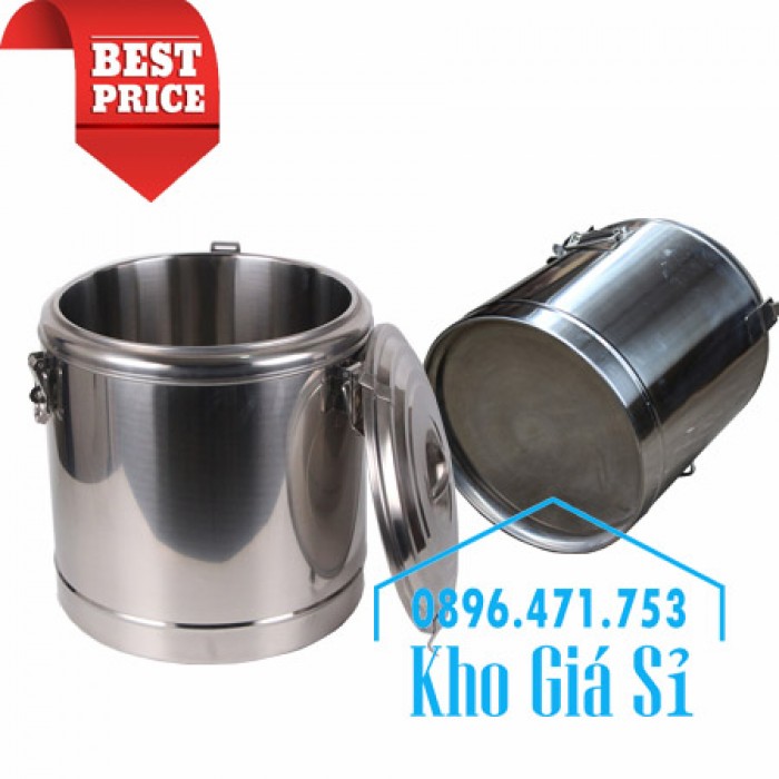 Thùng inox bảo ôn dung tích lớn với thiết kế cách nhiệt 2 lớp có nắp đậy kín