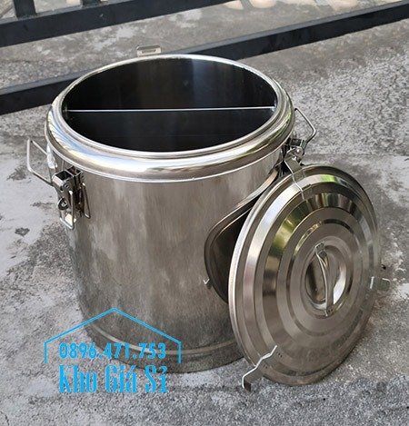 Thùng inox cách nhiệt 2 ngăn đựng thức ăn nấu chín có nắp đậy kín